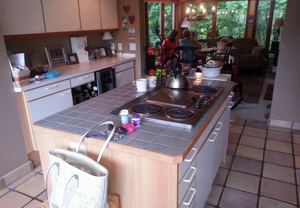 The old kitchen island was small and non-functional. The new island anchors the space and provides an ample prep area and loads of storage.