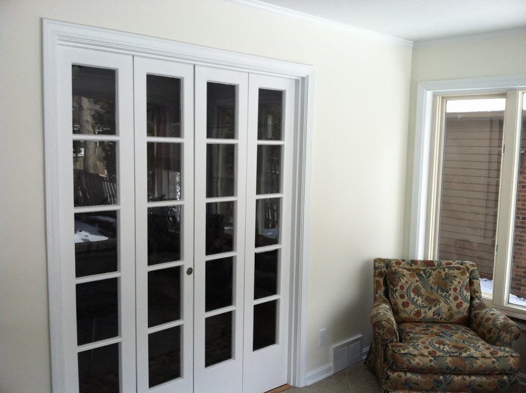 Keeping only the original windows and French doors, both the paneling and flooring was stripped; underfoot, we installed 18×18 Marazzi Aida tile (on a diagonal) to create clean, open lines and make the room feel more spacious. We repaired and prepped the walls, installed new trim and then finished with a fresh coat of paint. The simple facelift gave the room an entirely new look and feel.